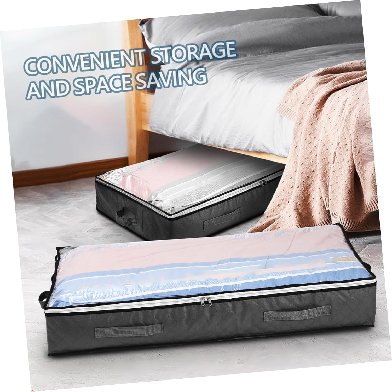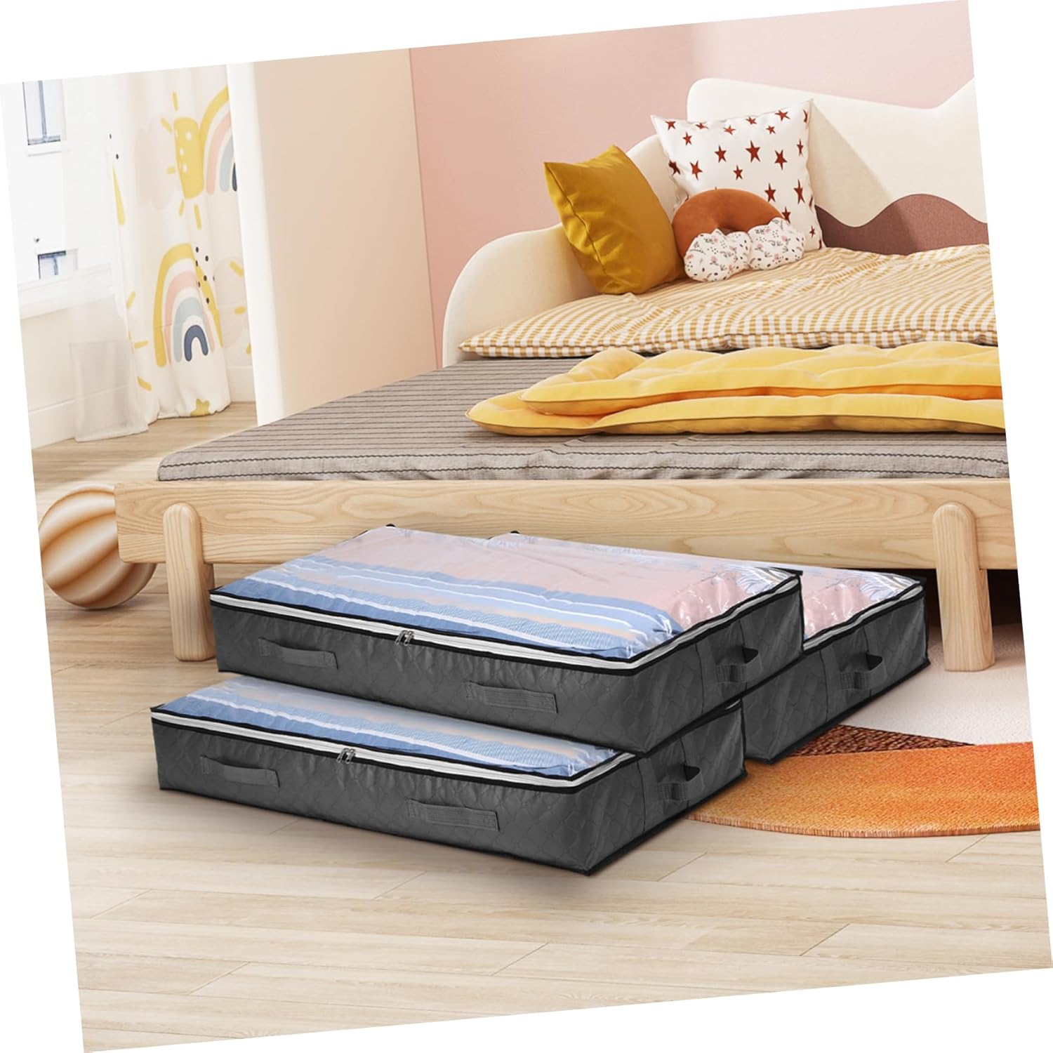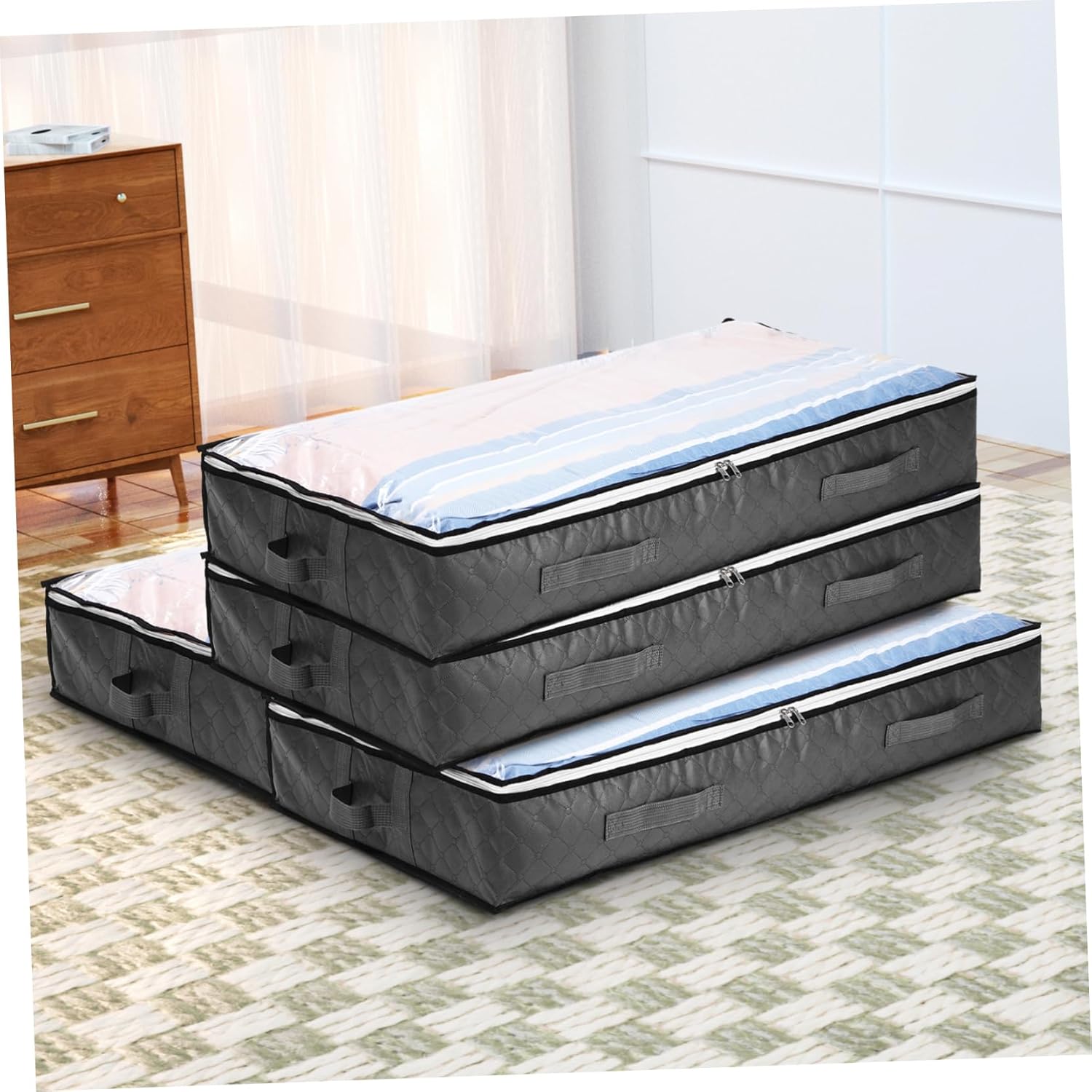 Package List 4 x storage bags Features - Maximize Storage: These under-bed storage bags offer ample capacity to accommodate your bedding stuff, including blankets, quilts, pillows Storage Containers For Clothes. - Use: Crafted from sturdy and fabrics, these clothes organizers are enough, ensuring storage Under Bed Storage. -Material:Non-woven fabric Bedding Storage -Size:100.00X50.00X15.00cm/39.30X19.65X5.89in Blanket Storage Bags - Clear window: These storage containers are designed with large and clear viewing windows on the top for easy identification and check Blanket Storage. - Space-saving : These storage bags are flat and long, easy to be placed , and they can be folded into a smaller size when not in use Clothes Storage. - Convenient Handling: The four handles on these closet organizers are sturdy and , making it effortless to carry and retrieve your stored items Clothes Storage Bins. -Color:Dark Grey Storage ContainersGoods DescriptionQuilt Storage Bin and , they can service you for a long time.Closet Storage Container want to space in your house and better organize your clothes, blankets, comforters and more stuff like these? Look no further than our under-bed storage bags! These storage bags are designed with long and flat shapes, which fully uses the space or closet