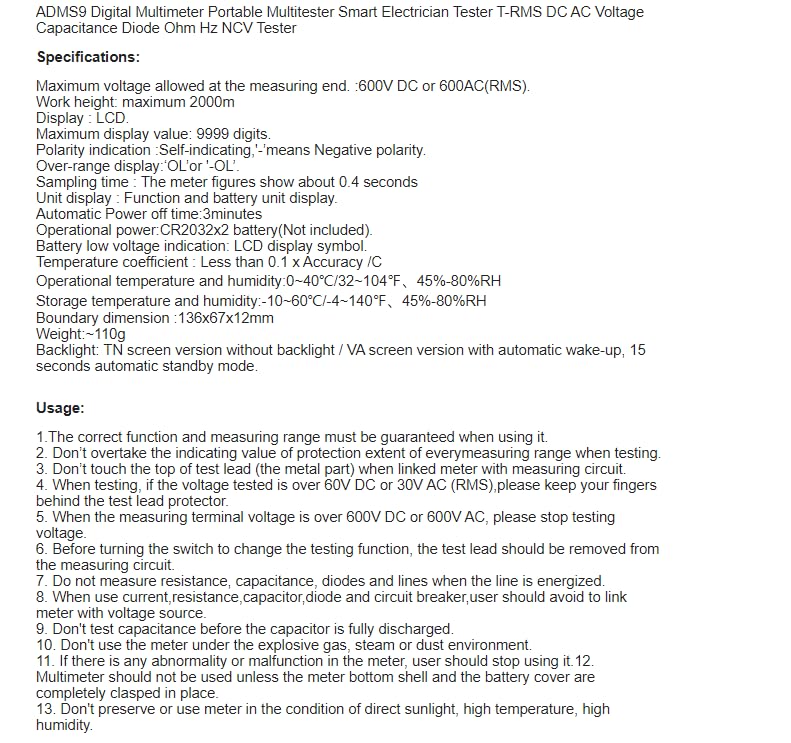 | Style Name | ADMS9 Digital Multimeter Portable Multitester Smart Electrician Tester T-RMS |