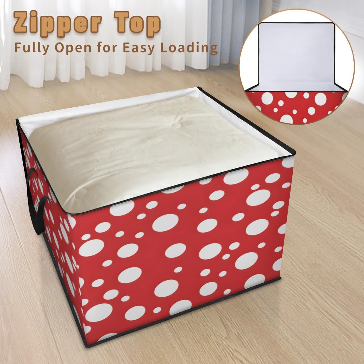 Honeybaby 214L Extra Large Comforter Storage Bag Red White Dots Storage Totes with Lids Waterproof Closet Organizer Folding Blanket Storage Bags for Clothes Bedding Pillows
