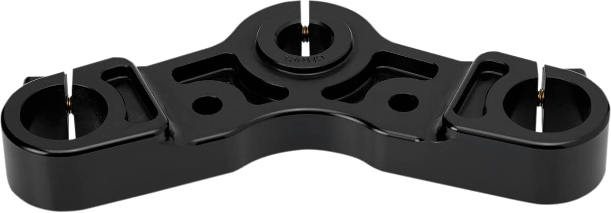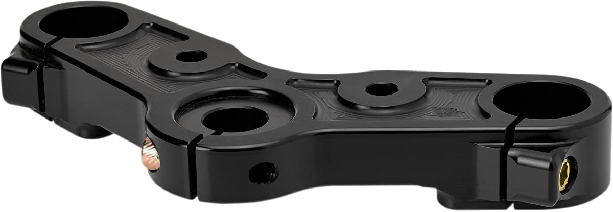 Fits 2010-up Sportster Forty-Eight. Replace your Harley-Davidson Sportster Forty-Eight model "built-in handlebar riser" top tree clamp with one of our versatile billet clamps. Replaces the stock "dedicated to one option handlebar clamp", with mounting holes that accept pretty much any riser selection that's out there. Aircraft inspired design. CNC machined from billet aluminum. Available in our "HARD BLACK", or clear anodized finishes. Upper Tree comes with 1/2-13 riser mounting bolts.