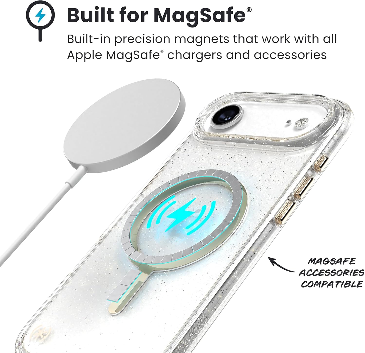 Protect your phone with the Speck PRESIDIO LUX — a premium case built for impact, everyday use, and magnetic compatibility where applicable. Whether you're commuting, traveling, or simply on the move, this case is designed to keep your device safe and accessible. It combines built-in magnets for full MagSafe charging and accessory compatibility with a dual-layer build that absorbs shocks, protects your screen and camera, and maintains a form-fitting silhouette for everyday convenience. The GLITTER/GOLD METALLIC finish offers a bold yet refined aesthetic that complements your phone’s original design. Backed by Speck’s proven legacy of innovation, this case is more than just protection — it’s peace of mind.
