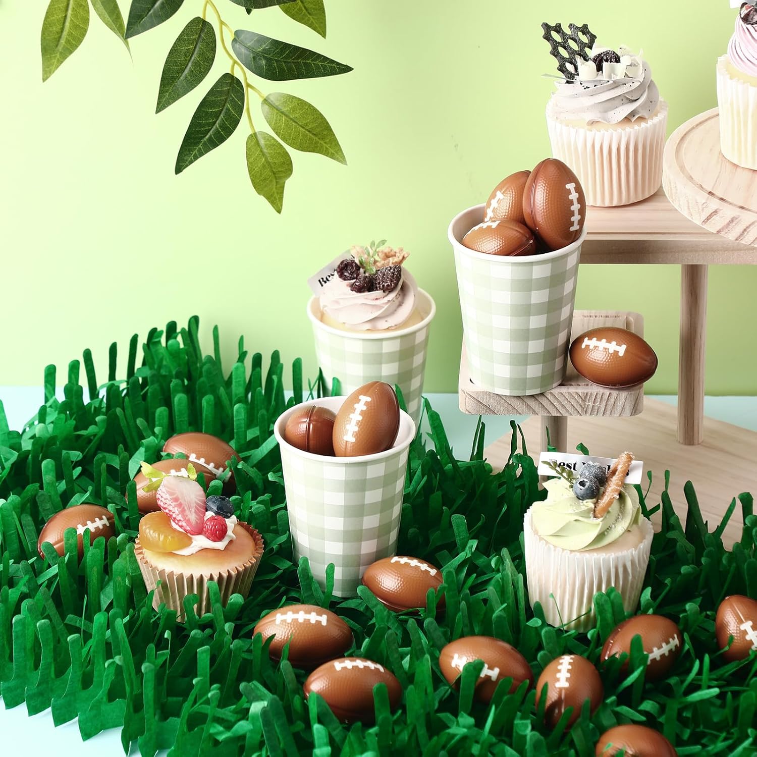 Features: Comprehensive package for ultimate convenience: This football centerpiece decor set for party ensures you have everything you need in one package. The inclusion of mini football pieces, paper grass, and adhesive dots provides the ultimate convenience, allowing you to effortlessly create cohesive football themed party decorations without any additional purchases Nice for football enthusiast: Whether you're planning a football themed party or need football birthday decorations, this set caters to both adults and kids. Its universal appeal makes it the ideal choice for football centerpieces with grass, enabling anyone to create a memorable football atmosphere that will be enjoyed by guests of all ages. Specifications: Material: Mini football: plastic Paper grass: paper Color: brown, green Size: Mini football: approx. 2.05 x 2.05 inches/ 5.2 x 5.2 cm Paper grass: approx. 29.92 x 14.96 inches/ 76 x 38 cm Adhesive dots: approx. 0.39 inch/ 10 mm Package includes: 24 x Mini football 6 x Paper grass 20 x Adhesive dots Notes: Manual measurement, please allow slight errors on size. The color may exist a slight difference due to different screen displays
