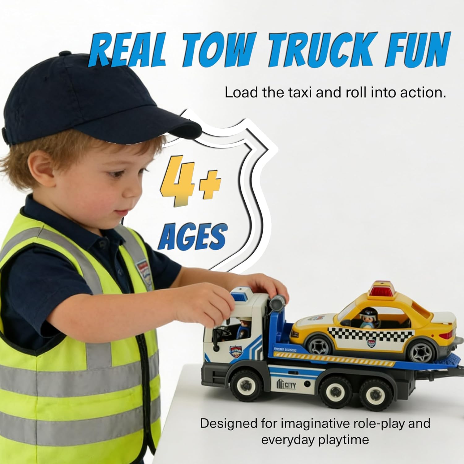 | Assembly Instructions Description | Assembly required. Follow the provided instructions to put together the tow truck and taxi before play. |