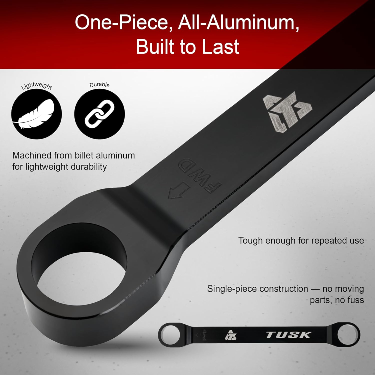 The Tusk Clutch Alignment Tool is built from lightweight aluminum to correct shaft spacing on your UTV clutches. With bores to match the Crankshaft and Transmission shaft of your CVT clutch, simply slide the tool onto each shaft to check the alignment and spacing of your clutches. Stop the headache of tearing through drive belts and prevent unnecessary wear on your clutch components with the Tusk Clutch Alignment Tool.