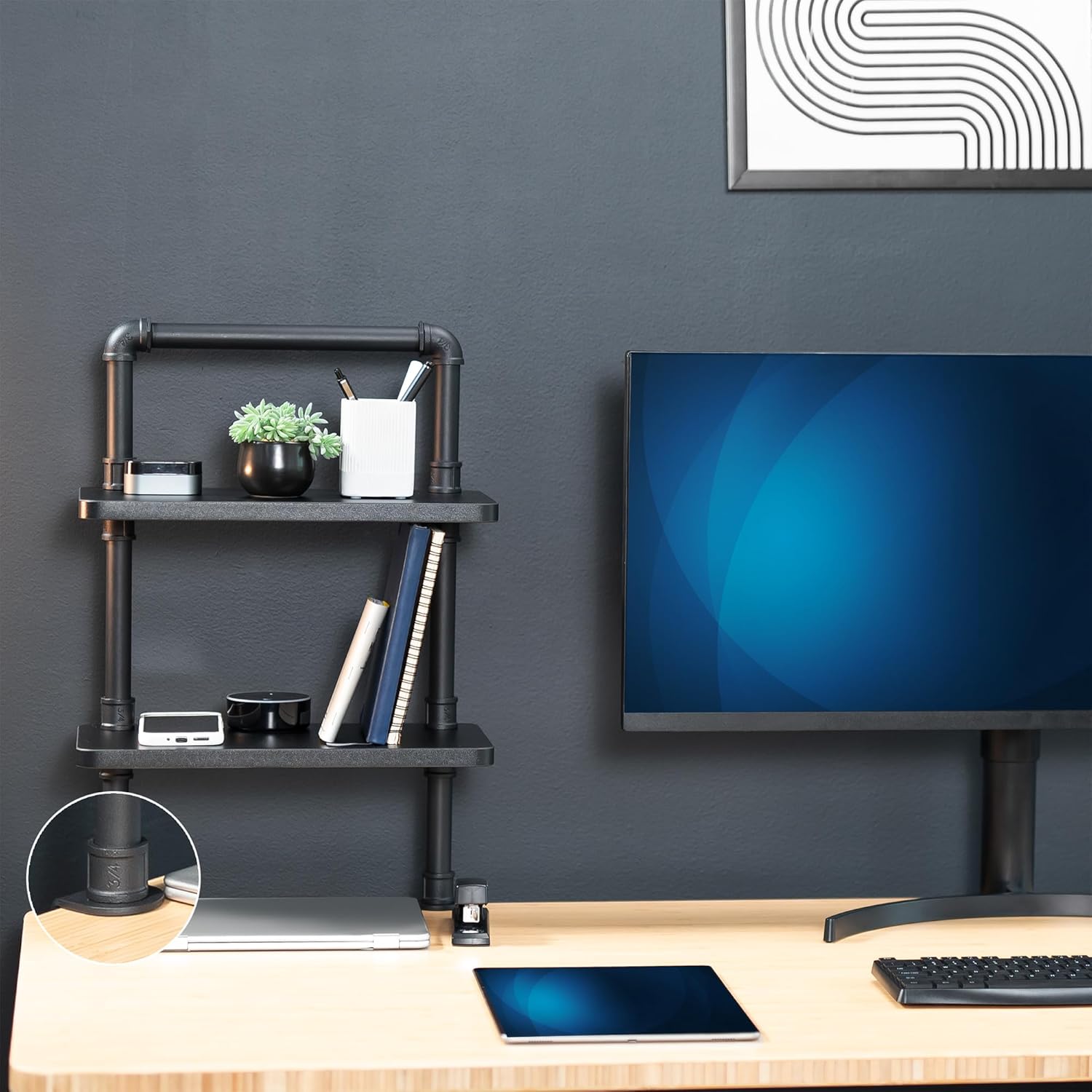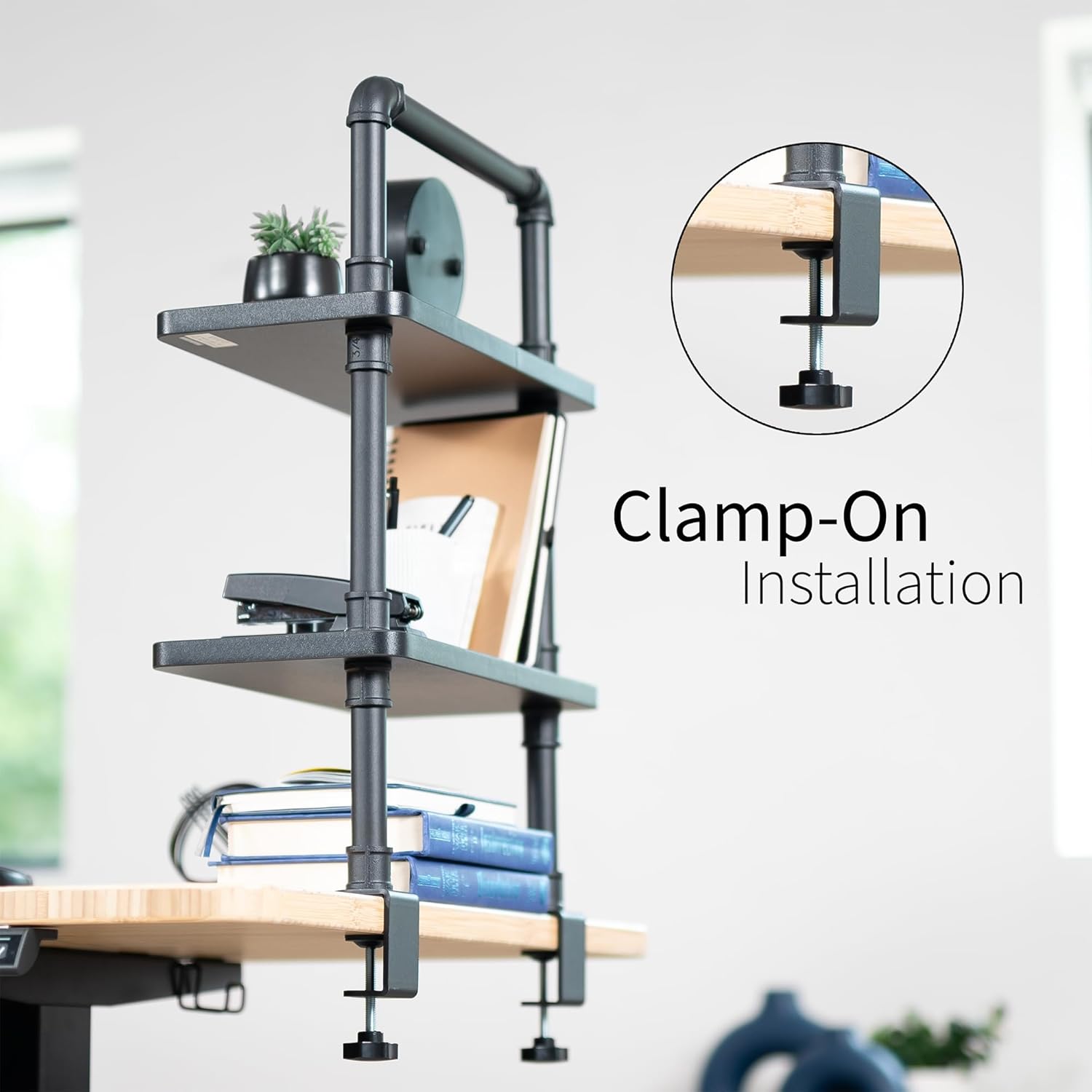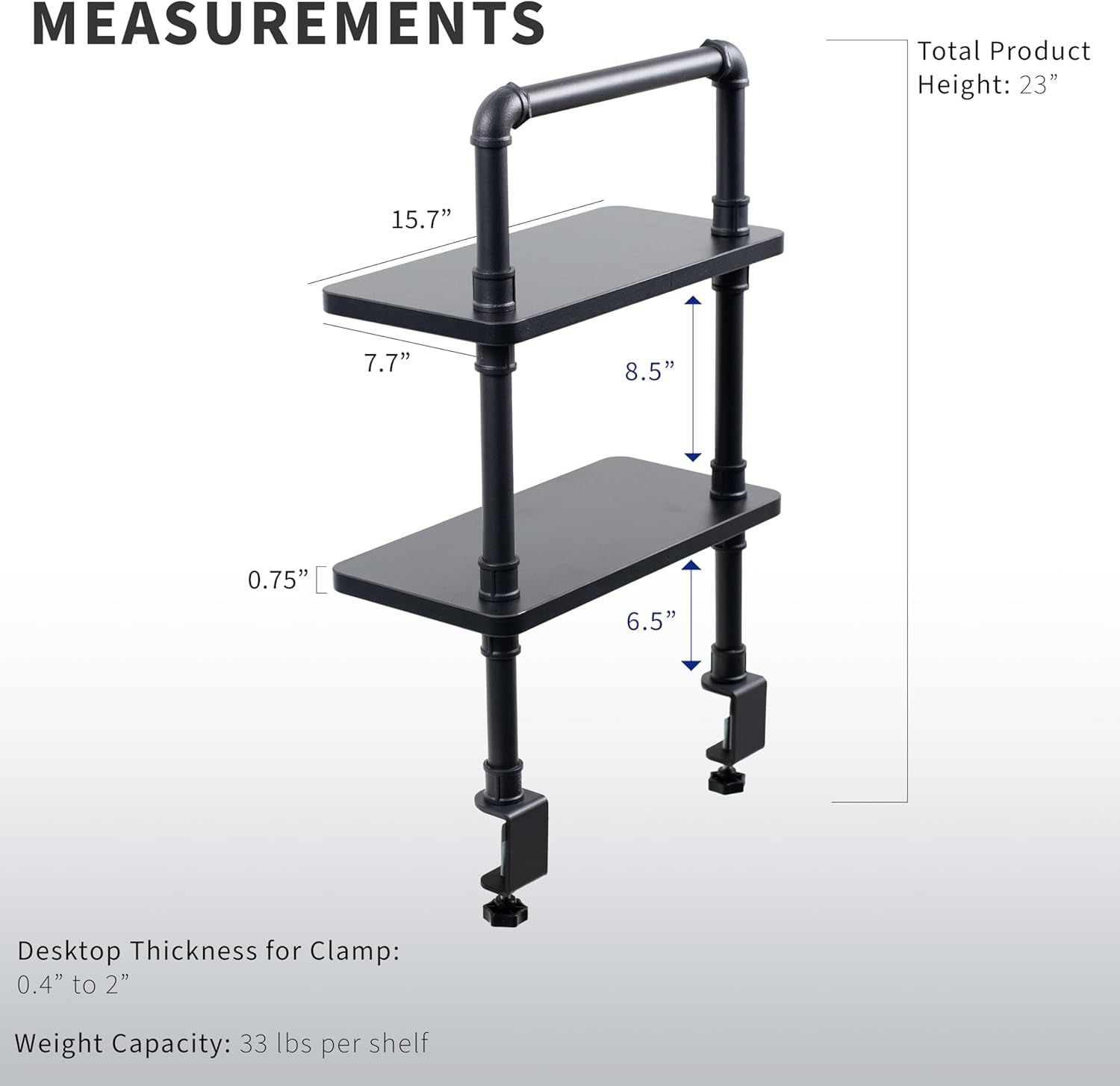 | Assembly Instructions Description | The product requires assembly. To install, attach the clamp to the desktop and secure the shelves to the clamp. Ensure the desktop is stable and can support the weight of the shelves and items placed on them. Follow the included instructions for proper assembly and use. |
