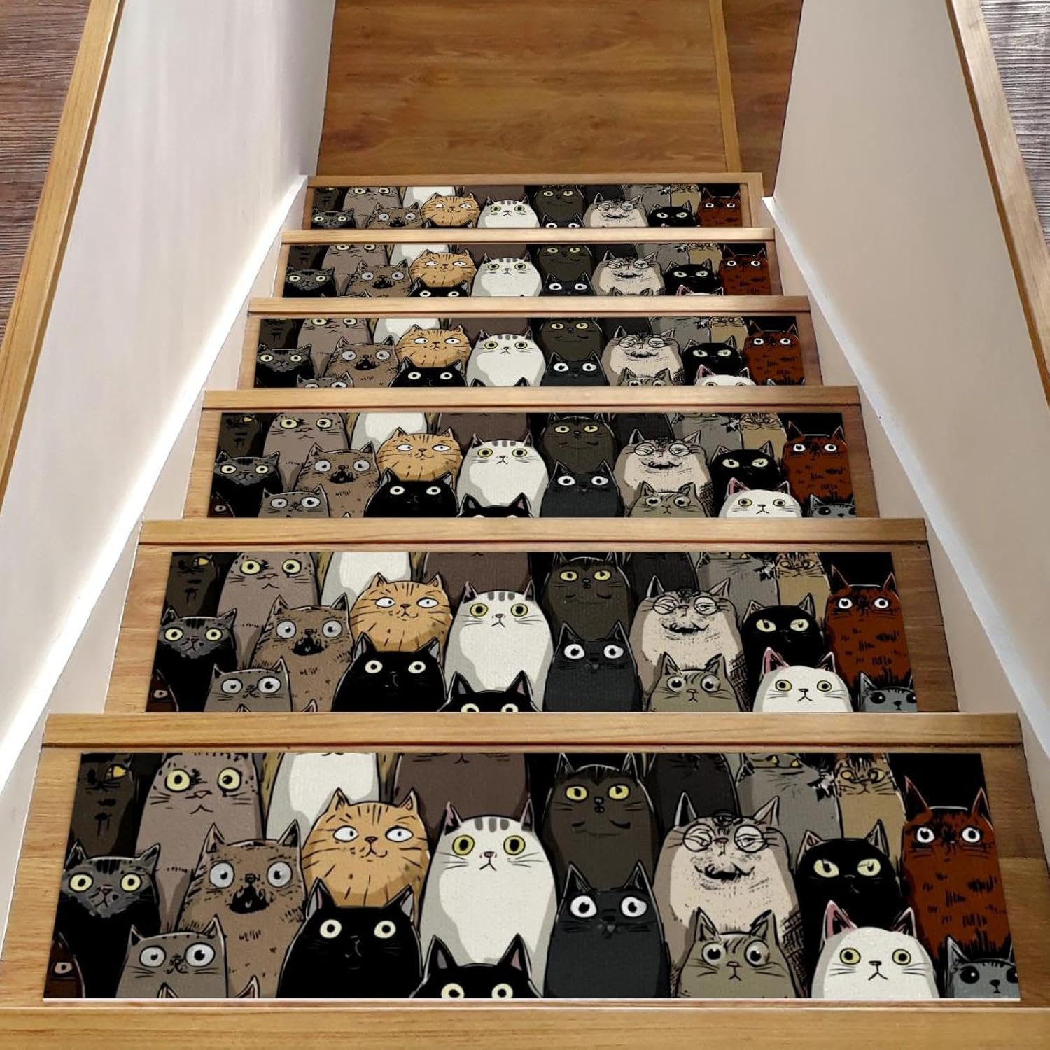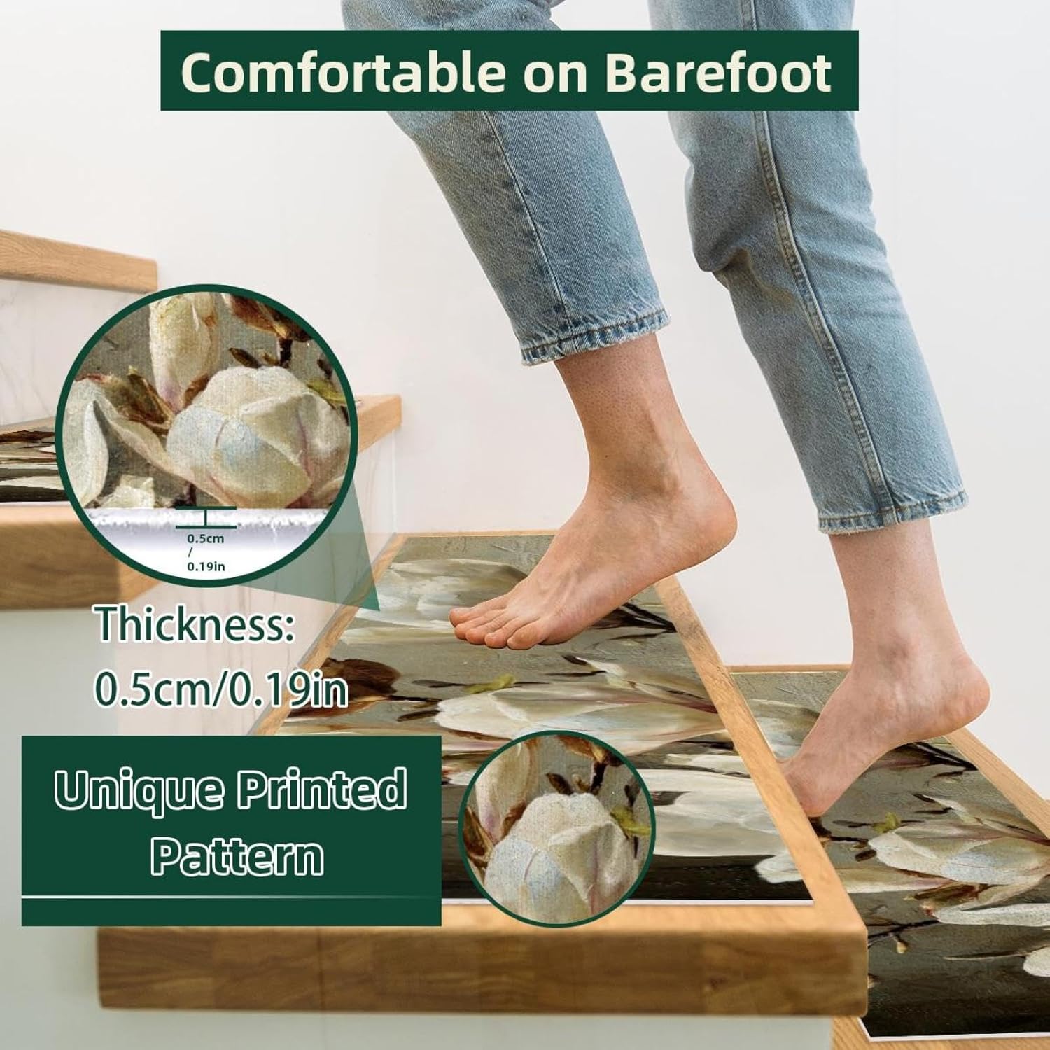 ・Size: 30 x 8 in / 76 x 20 cm, 5 mm thickness. ・Material: The polyester surface absorbs water, preventing stains on the floor. The TPE back is non-slip and water-resistant, preventing damage to the stairs. ・Package Contains: 15 pieces of 30x8in (about 76x20cm) stair mats, 5mm thick. Suitable for most needs. Each stairway treads rugs is individually wrapped. ・Easy to Clean: Vacuum, hand wash or machine wash. The stair runners for wooden steps can be machine washed, preferably hand washed, or vacuumed. Do not use bleach or tumble dry at high temperatures, drying at appropriate low temperatures will give you a comfortable texture. ・Noise Reduction of Stair Treads: By adding our stair runner, not only can you protect your floors, but you can also significantly diminish the noise caused by walking up and down the stairs. Stair rugs can decorate your stairs, create a warm home atmosphere, you can enjoy a peaceful and quiet home environment without disturbances. ・Easy to Remove Adhesive Backing: When you want to replace the stair treads non slip, the adhesive backing easily removes without leaving residue on the steps. ・Holiday Design: Stair carpet treads are designed specifically for Christmas,Halloween, Thanksgiving Day features classic festival elements and vivid printing styles,creating beautiful and stunning visual effects for you. This holiday themed stair treads can easily help you add a strong festive atmosphere, bringing charming and exquisite holiday decorations.
